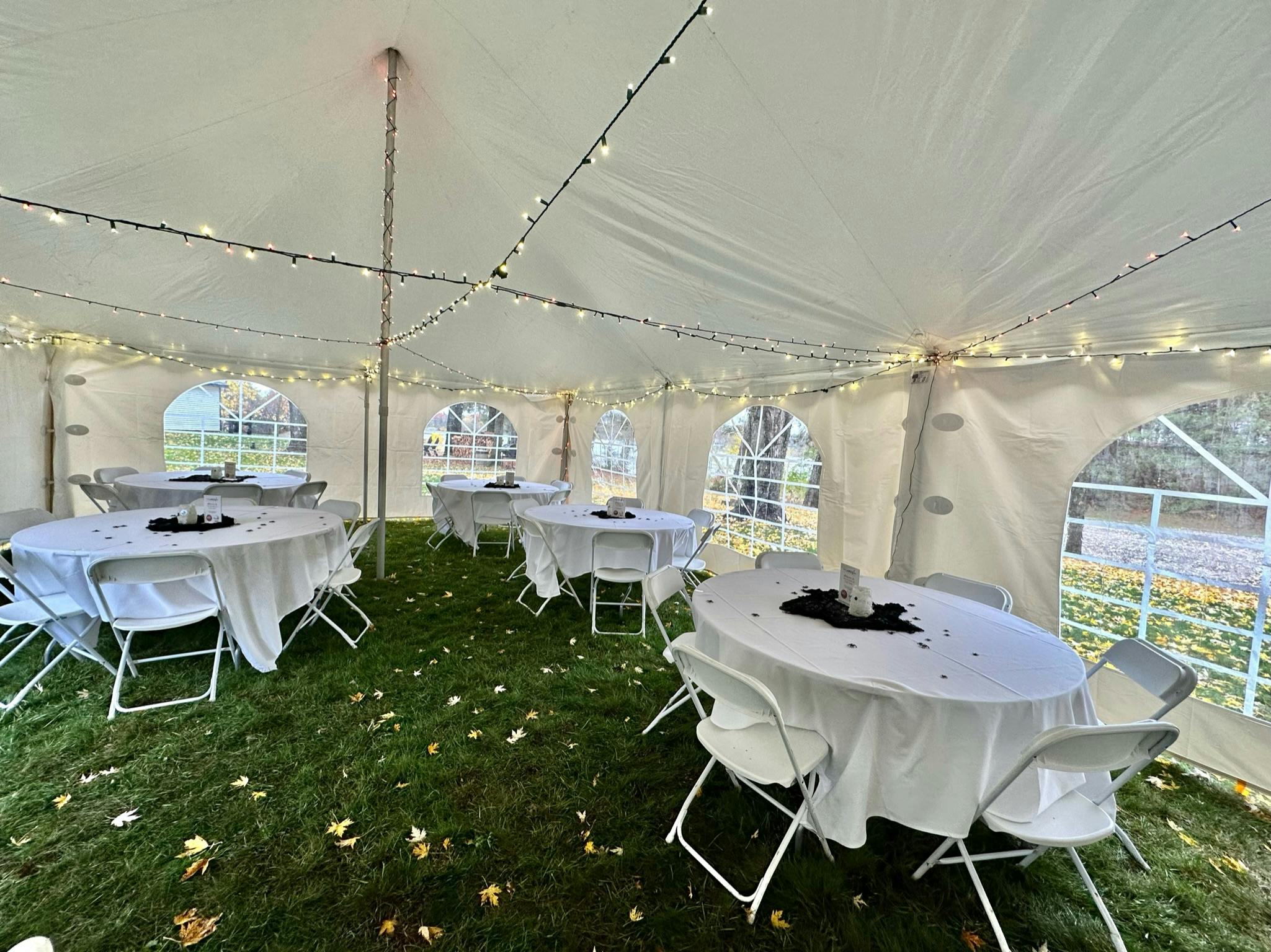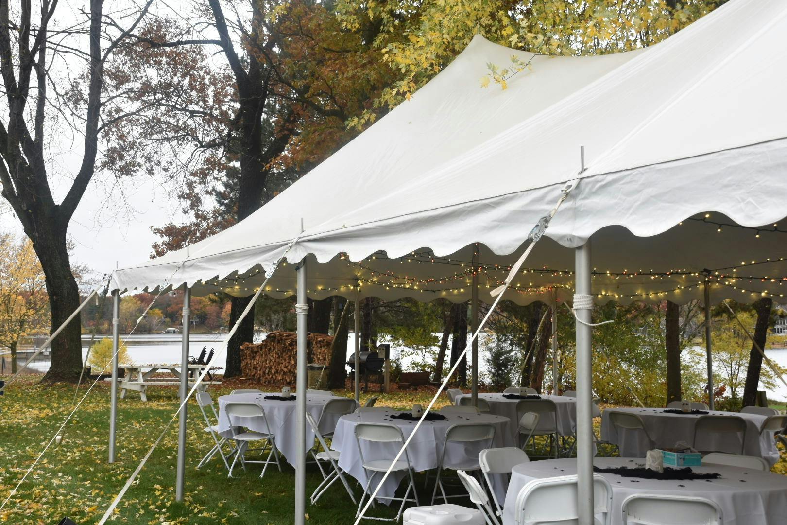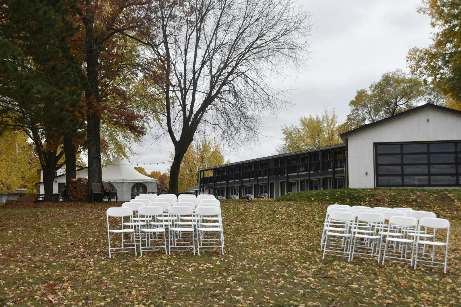 Our recently renovated event space (25x45) with a private half bath, boasts a roll-up glass garage door, providing scenic views of Lake Sherwood. Additionally, our property offers ample room for a tent to enhance the desired ambiance. Enjoy fire pits (wood provided!), horseshoe pits, and lots of on-site space for families and friends to gather and enjoy time together.