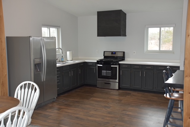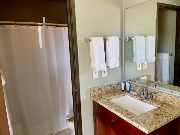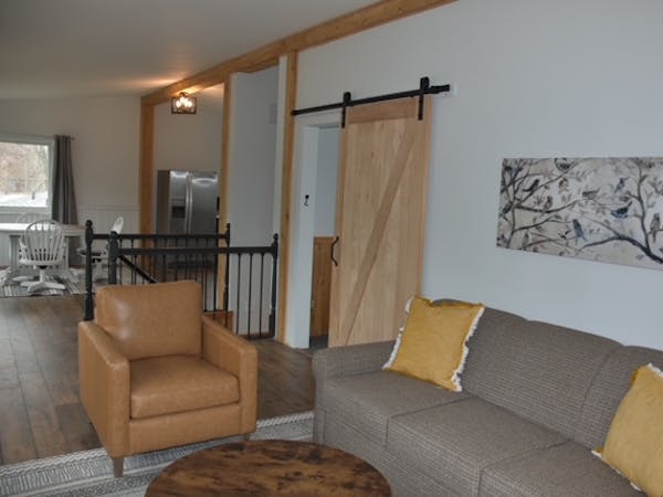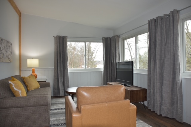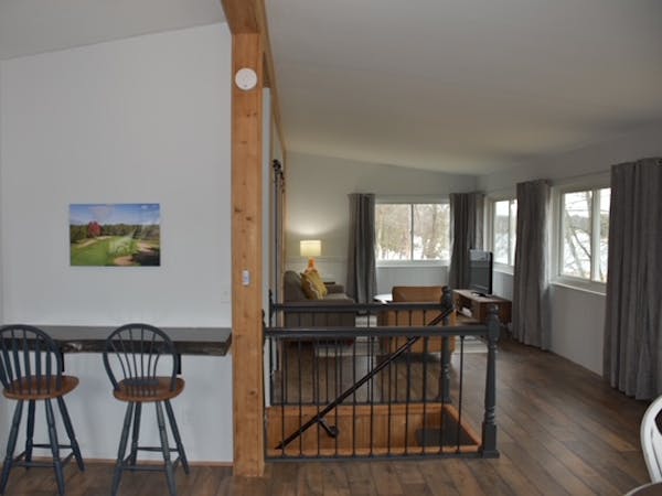 This newly renovated two floor suite can accommodate up to six guests. The suite features two bedrooms (king beds), two full bathrooms, a living room with a queen sleeper sofa, a full kitchen and a private deck. The suite is a perfect home base for family vacations, wedding parties and golf groups. The suite includes free high-speed internet and is non-smoking.